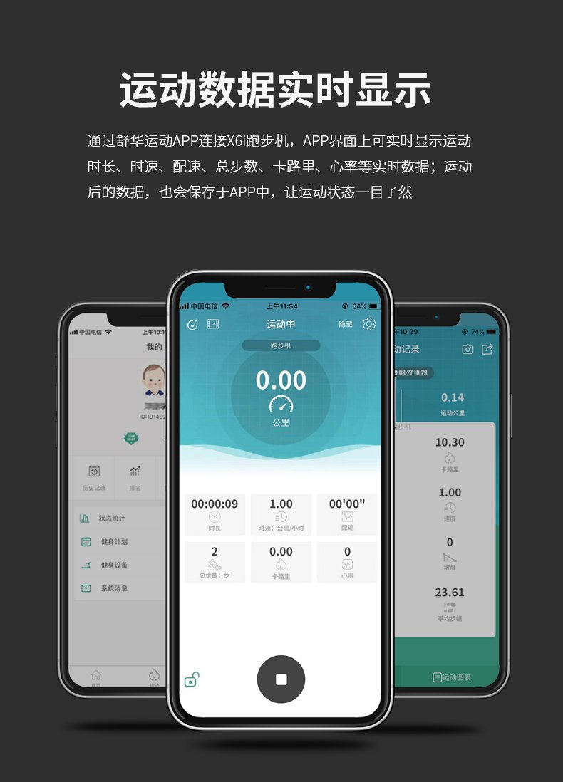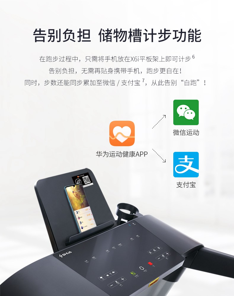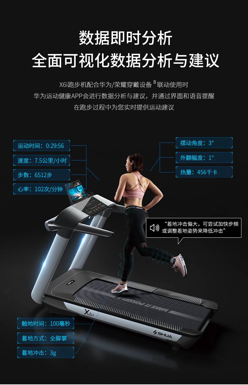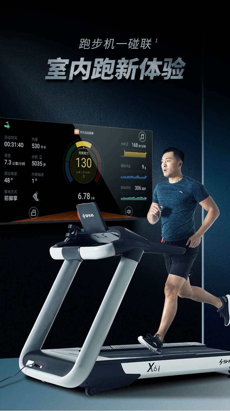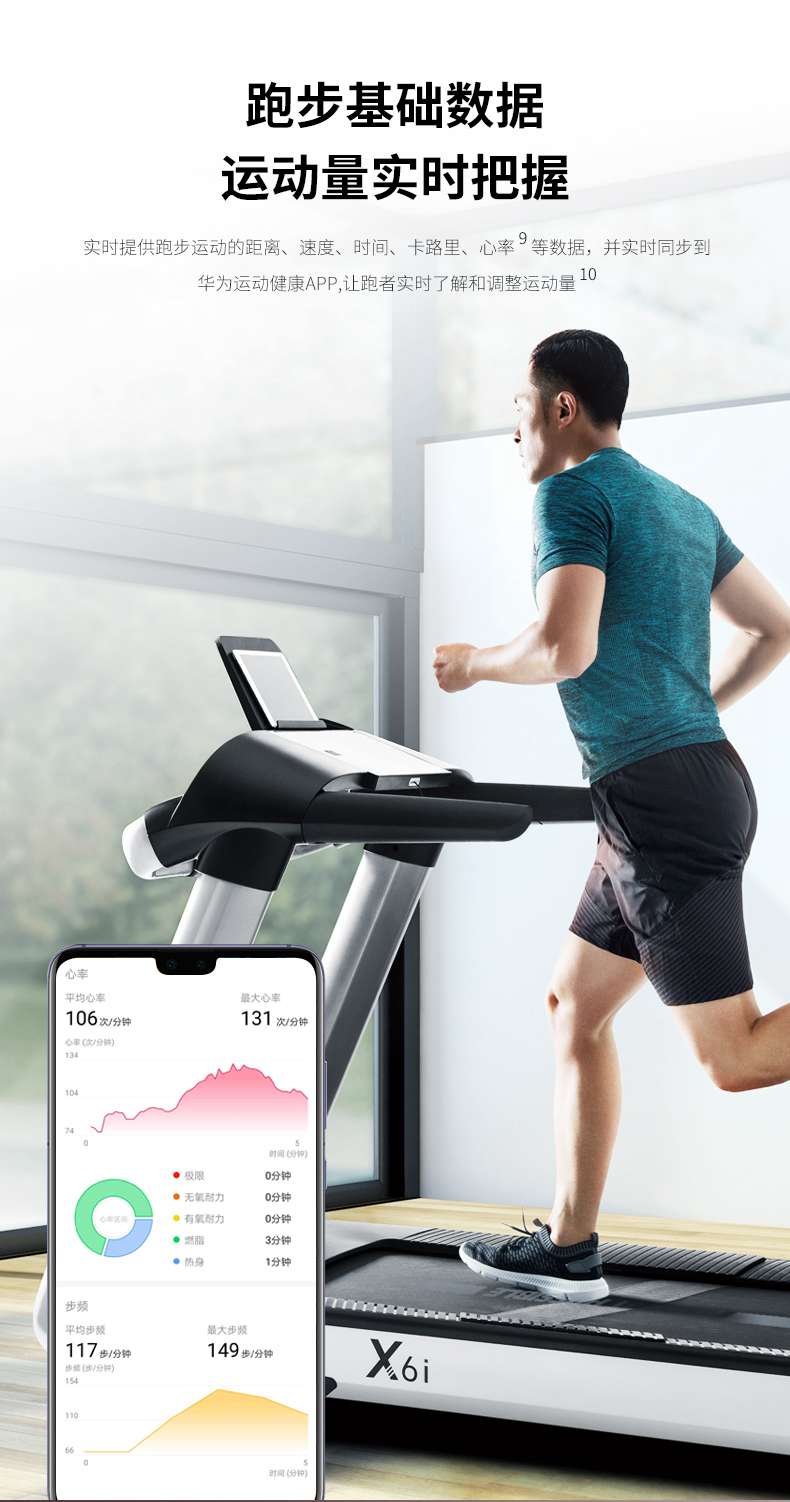 YABO.COM跑步机-X6心率跑步机,可根据用户运动是实时心率,跑步机自动调节跑步速度、坡度等进行运动强度的调节,更科学;X6i华为版跑步机,可以通过连接华为运动健康APP,监测多种类型跑步数据。欢迎来电咨询~