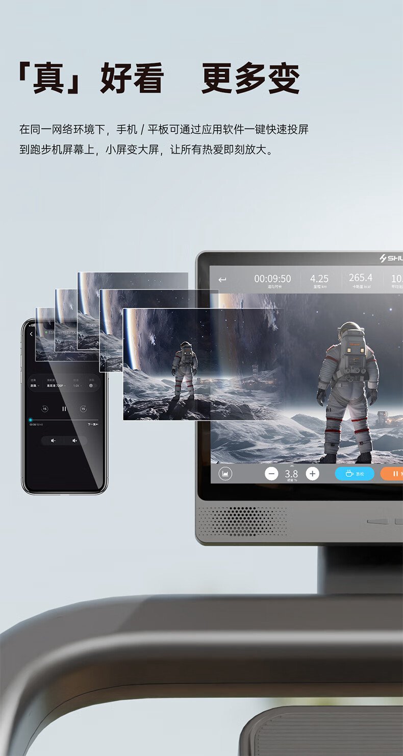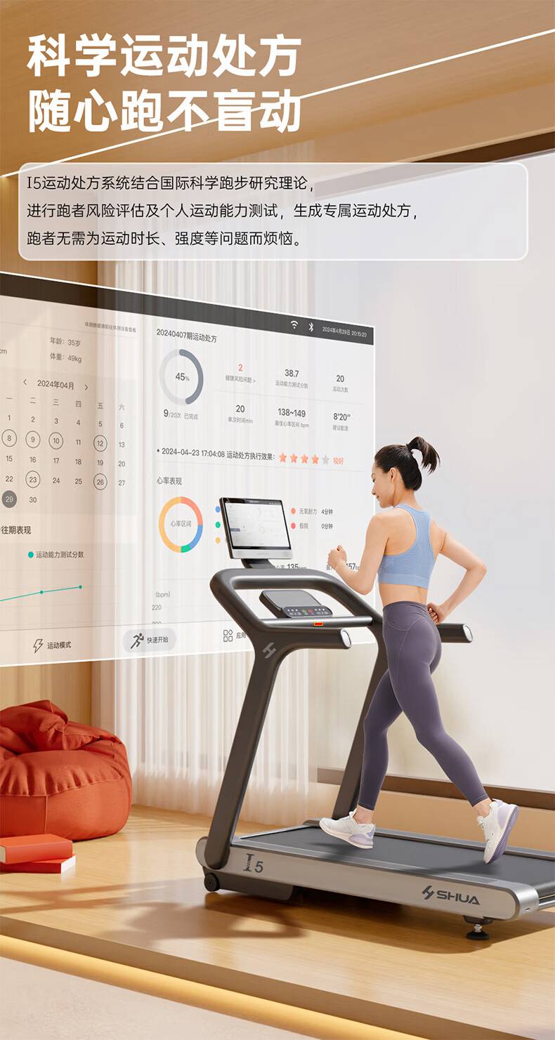 YABOSH-T580T I5跑步机,科学运动处方,随心跑不盲动,可根据个人运动处方心率区间及跑者的实时心率情况,自动调节速度或坡度,犹如你的专属“配速员”让你随“心”而跑无负担。