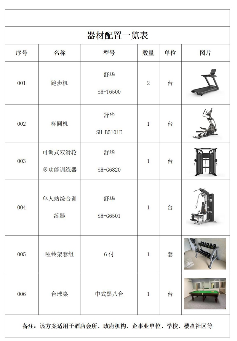 健身器材配置说明∶