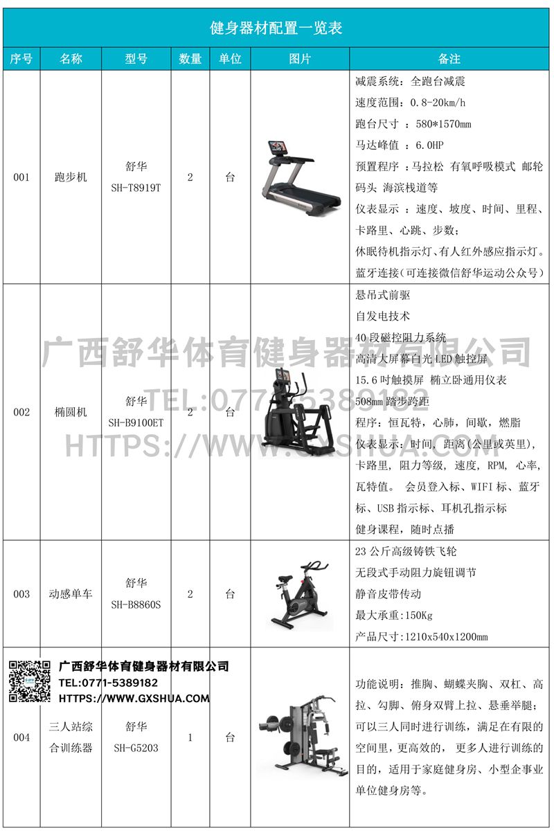 1.YABOV9跑步机SH-T8919T*2台-V9+采用全跑台减震设计,为跑者提供舒适的落脚地感和稳定的跑步支撑,良好的缓冲防护,降低膝关节受伤风险。商用大跑台,为跑者提供从容奔跑空间,180kg承载力,580*1570纯跑台面积,满足专业健身需求。V9+采用F级商用马达,6HP峰值马力,20km/h最高速度,提供源源不断的动力。V9+内置健身直播软件,每周提供直播课程,内含大量专业线上健身点播课程,可为健身房不同人群提供多样化健身课程服务。