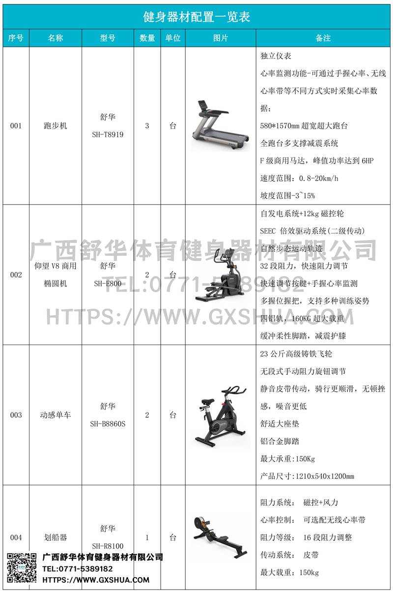 1.YABOV9跑步机SH-T8919*3台-580*1570mm超宽超大跑台-跑感舒适,跑台整体安全稳定;全跑台多支撑减震平台,保证跑台超强支撑力,达到180kg支撑,满足专业健身房需求。F级商用马达-超强马达,AC 3.0HP 交流,峰值功率达到6HP,F级商用品质。速度范围达到0.8-20km/h;V9跑步机可实现跑台扬升功能,坡度范围-3~15%,满足客户不同的锻炼需求。