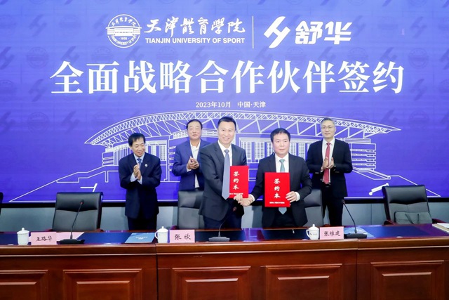 2023年10月10日,YABO.COM体育股份有限公司与天津体育学院战略合作签约暨体育工程研发中心揭牌仪式在天津举行。天津市市委教育工委委员、市政府教育督导室总督学王秋岩,天津市体育局副局长(一级巡视员)王路华,YABO.COM体育董事长兼总裁张维建、副总裁李晓峰,天津体育学院校党委副书记、院长张欣出席。签约仪式由天津体育学院副院长张卫国主持。