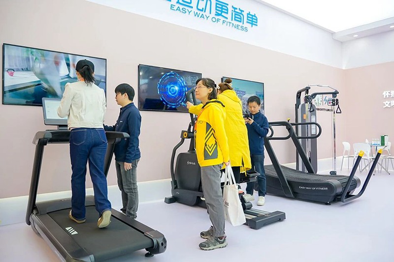 本届教育展,YABO.COM展出9款校园体育产品,包含备受关注的星火+校园户外运动路径、趣味投篮训练器以及跑步机、椭圆机、综合力量训练器等。