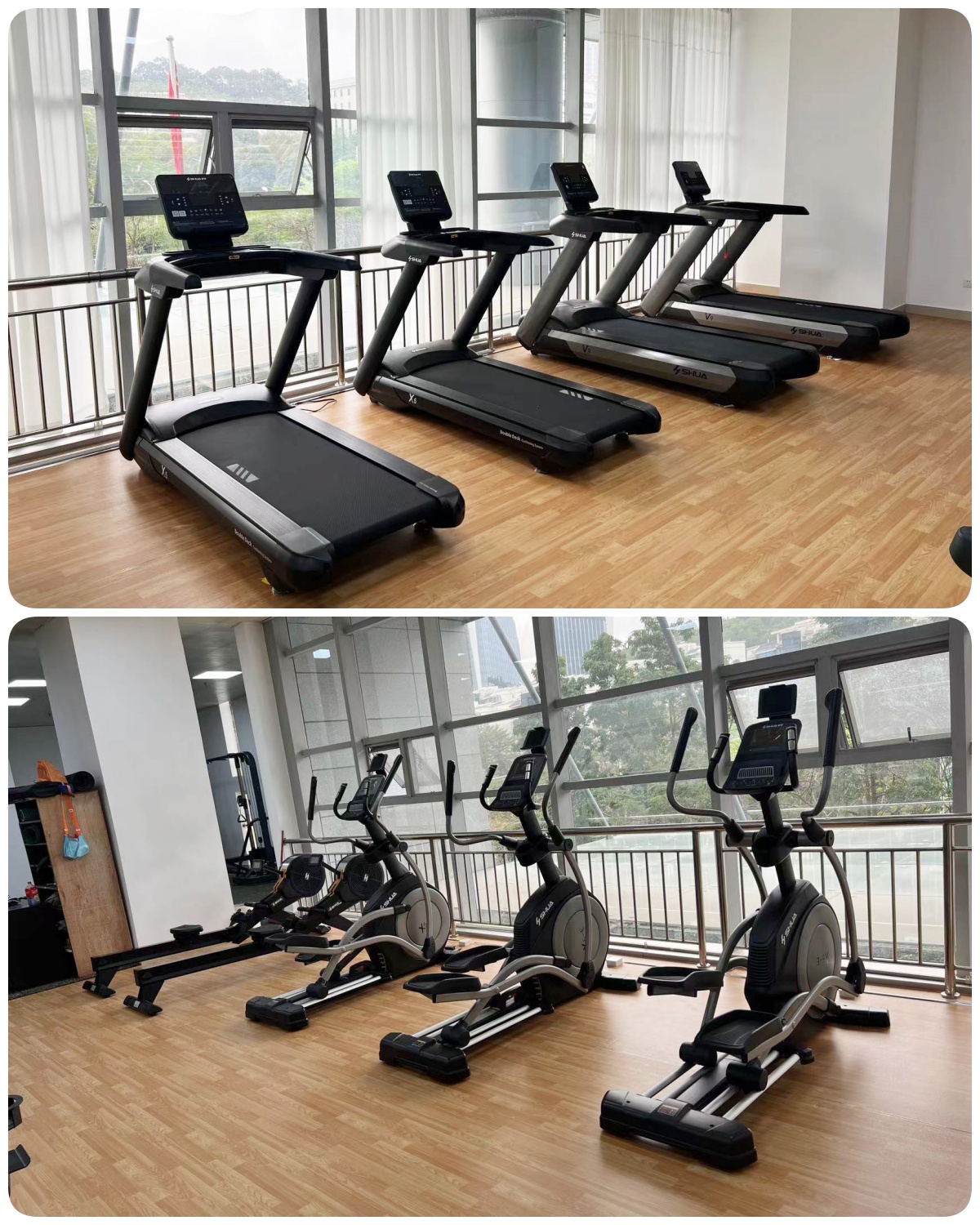 有氧区域主要配置了YABO.COMX5跑步机、X5-E椭圆机、划船器SH-R8100、动感单车。有氧器材可以改善心肺功能、促进血液循环、提高新陈代谢、提升身体素质、提供了多样化的锻炼选择、能有效缓解工作压力和焦虑情绪,从而提高注意力和专注力,使员工在工作中更加冷静、高效。
