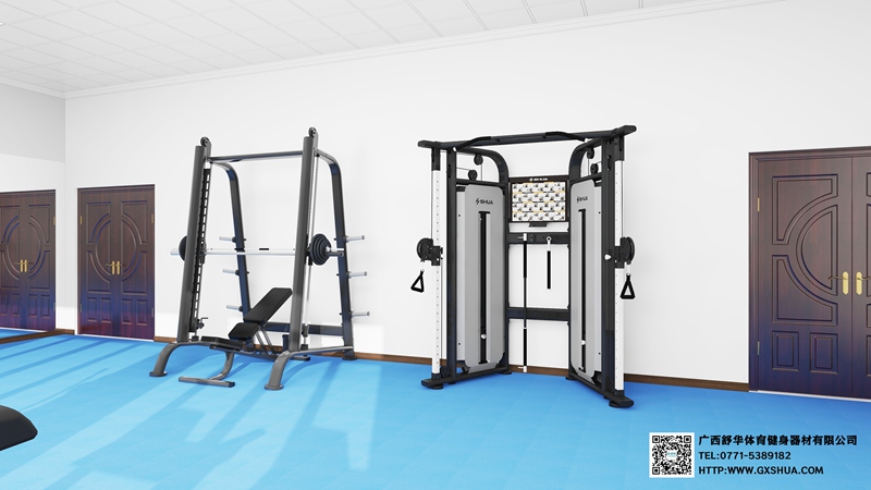 5.YABO.COM史密斯机SH-G6853*1台-锻炼股四头肌、股二头肌、肱三头肌;史密斯机采用固定轨迹的杠铃设计,大大降低了训练过程中的安全风险,通过深蹲、卧推、肩推等经典动作,可以针对性地锻炼腿部力量、上肢力量、背部肌群、胸部塑形以及肩部稳定等,从而全面提升身体素质,满足不同的健身需求;