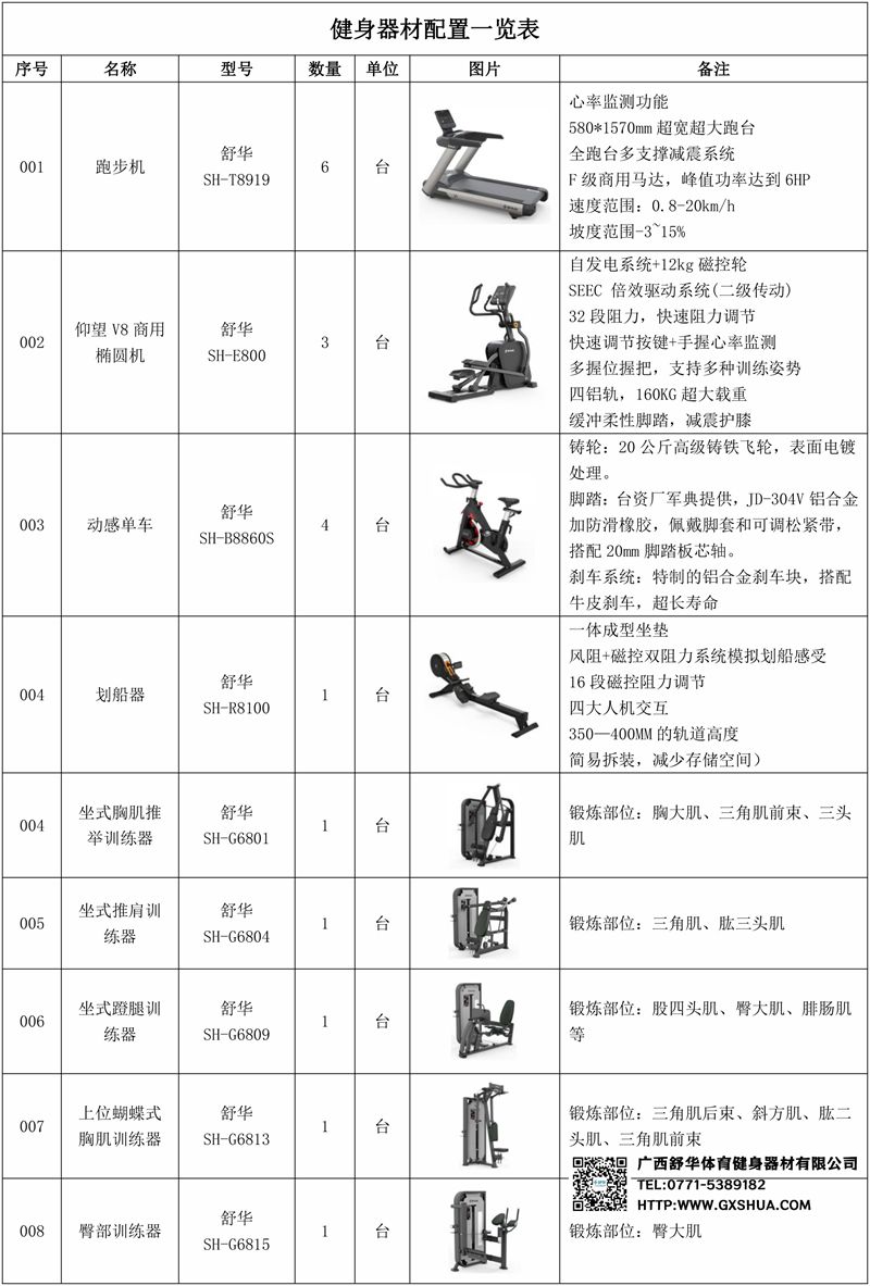 1.YABO.COMV9智能跑步机SH-T8919*6台-独立仪表-简洁大气,全新外观设计,健康运动新选择;心率监测功能,可通过手握心率、无线心率带等不同方式实时采集心率数据;580*1570mm超宽超大跑台-跑感舒适,跑台整体安全稳定;全跑台多支撑减震平台,保证跑台超强支撑力,达到180kg支撑,满足专业健身房需求。F级商用马达-超强马达,AC 3.0HP 交流,峰值功率达到6HP,F级商用品质。速度范围达到0.8-20km/h;V9跑步机可实现跑台扬升功能,坡度范围-3~15%,满足客户不同的锻炼需求。
