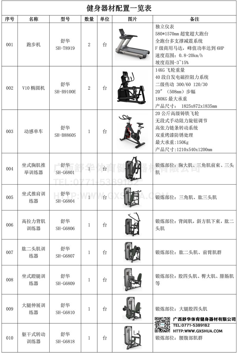 1.YABO.COMV9高端跑步机SH-T8919*2台-独立仪表-简洁大气,全新外观设计,健康运动新选择;心率监测功能,可通过手握心率、无线心率带等不同方式实时采集心率数据;580*1570mm超宽超大跑台-跑感舒适,跑台整体安全稳定;全跑台多支撑减震平台,保证跑台超强支撑力,达到180kg支撑,满足专业健身房需求。F级商用马达-超强马达,AC 3.0HP 交流,峰值功率达到6HP,F级商用品质。速度范围达到0.8-20km/h;V9跑步机可实现跑台扬升功能,坡度范围-3~15%,满足客户不同的锻炼需求。