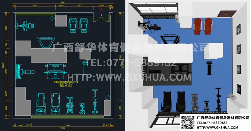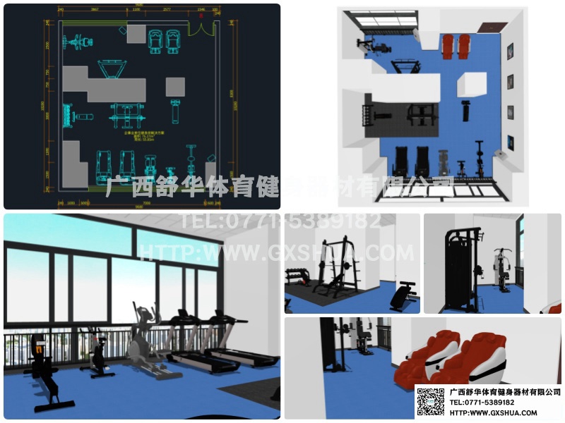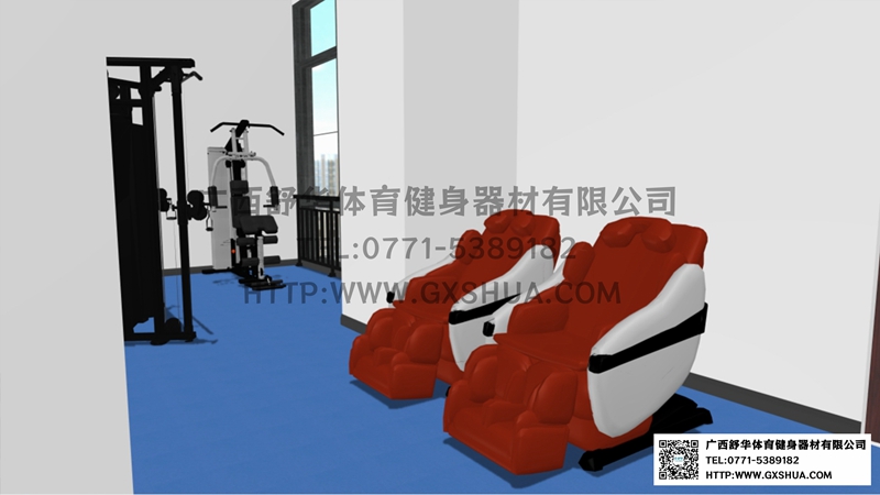 由于企业单位健身房的不规则性,根据场地、职工需求、整体预算,有氧器材区域配置YABO.COM跑步机2台,椭圆机、动感单车、划船器各1台,满足职工的日常有氧训练需求,有效地提升心肺功能;力量器械配置单人站综合训练器、小飞鸟,满足使用者全身锻炼的需求;自由力量区域配置史密斯机、哑铃套组、腹肌板满足多样化训练需求,促使健身训练更丰富,休闲区配置按摩椅,可以促进血液循环,让员工使用按摩椅放松身心,可以能够有效缓解工作压力。