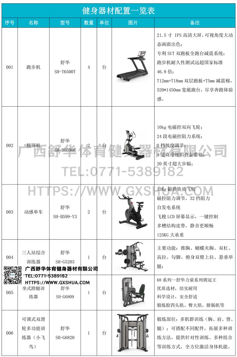 1.YABO.COMX5 Pro跑步机SH-T6500T*4台-经典时尚造型配色,简约Z字车架造型,融合各种家居风格,彰显奢华运动质感;21.5英寸高清触控屏-传承动感美学,成就时代典型之作全新升级V3.0系统,支持系统在线升级,极大提升用户交互体验;专利减震跑台-采用SUT双层跑板、全跑台减震系统,且该减震科技获得国家专利,有效减少关节冲击,52cm宽跑台搭配精抽雏形滚筒,稳固不位移;F级马达动力强劲-5.0HP峰值马达,2.5HP持续输出,0~15%坡度调节,最高18km/h时速,胜任不同类型训练;