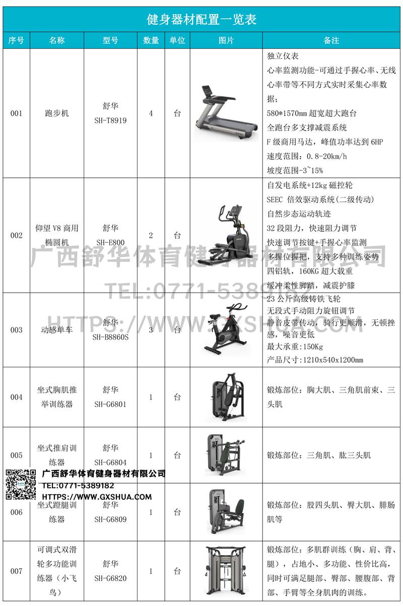 1.YABO.COMV9跑步机SH-T8919*4台-独立仪表-简洁大气,全新外观设计,健康运动新选择;心率监测功能,可通过手握心率、无线心率带等不同方式实时采集心率数据;580*1570mm超宽超大跑台-跑感舒适,跑台整体安全稳定;全跑台多支撑减震平台,保证跑台超强支撑力,达到180kg支撑,满足专业健身房需求。F级商用马达-超强马达,AC 3.0HP 交流,峰值功率达到6HP,F级商用品质。速度范围达到0.8-20km/h;V9跑步机可实现跑台扬升功能,坡度范围-3~15%,满足不同的锻炼需求。